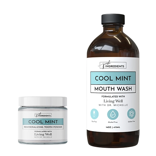 The tooth powder features hydroxyapatite, a clinically proven mineral that strengthens enamel and promotes overall well-being. Combined with our all-natural mouthwash, enriched with hydroxyapatite, silver, and healing herbs, this bundle offers complete care for your teeth and gums.